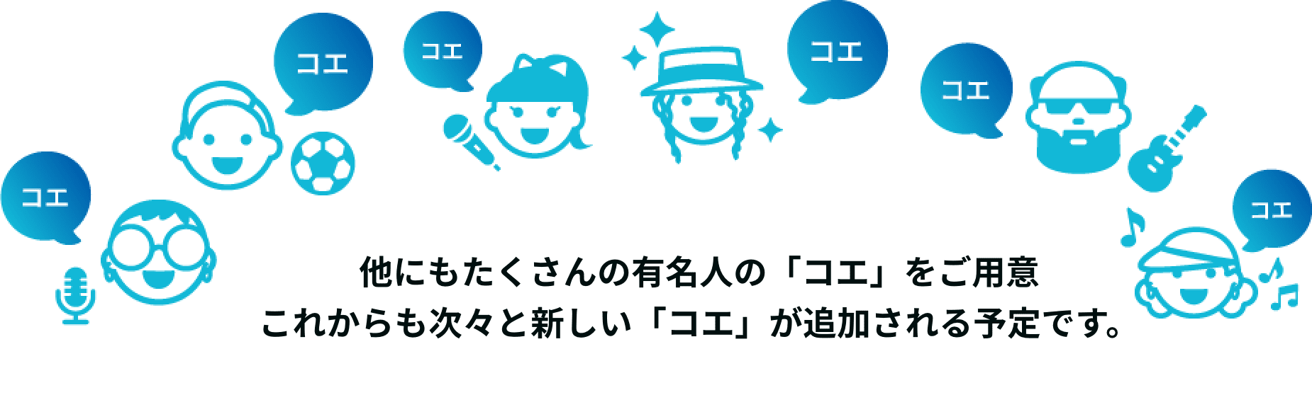 ※ご希望される有名人の「コエ」の生成も承っております。(別途初期費用がかかります)